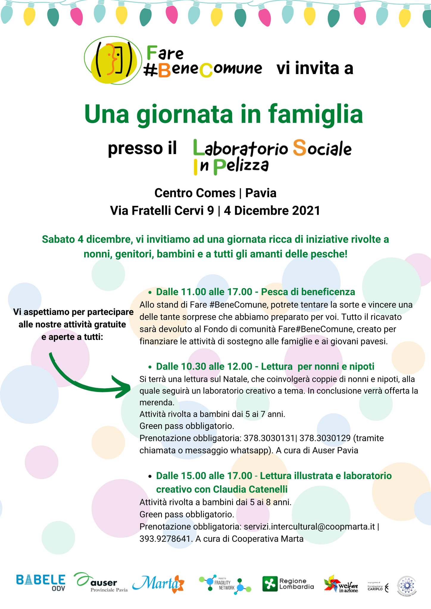 Evento organizzato nell’ambito di Fare #BeneComune, da Babele Odv in collaborazione con Auser Comprensoriale di Pavia e Cooperativa Marta Comune di Pavia CSV Pavia Aldia Cooperativa Sociale Fondazione G. Costantino Laboratorio Sociale La Torretta Laboratorio Sociale Crosione InScala Laboratorio Sociale Calypso – il teatro per il sociale.